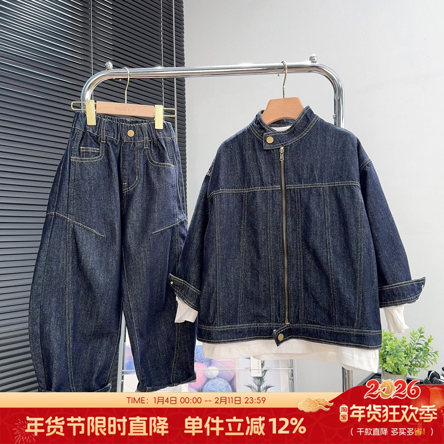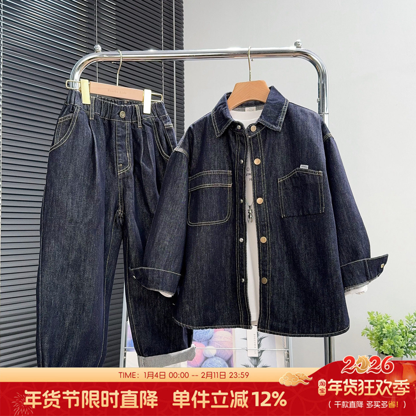 INSbobo儿童套装春装2026春季新款男童牛仔套装时髦女童长袖