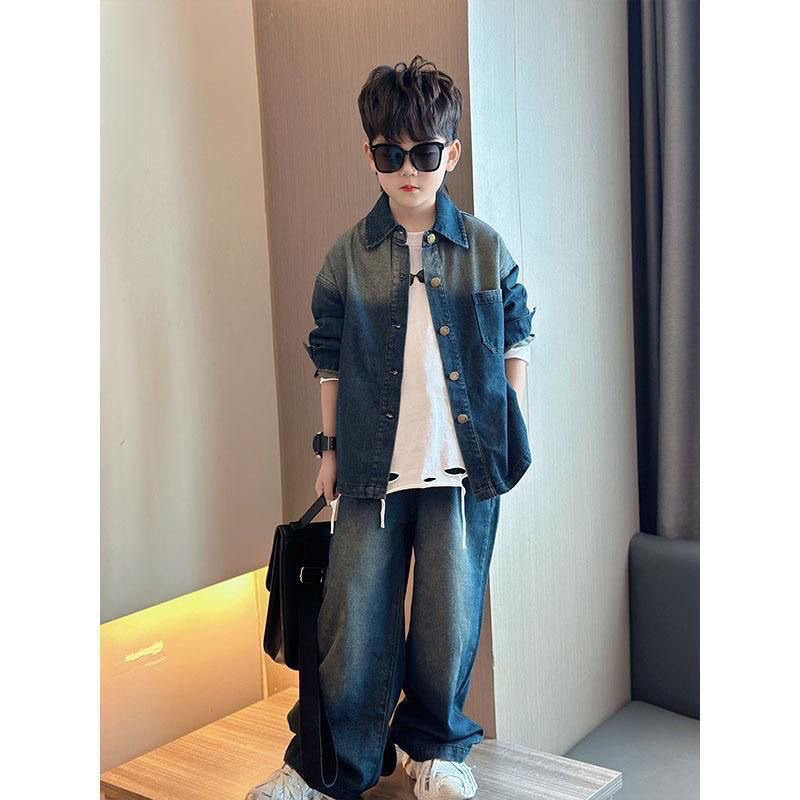 2026男童牛仔套装春秋中大童复古怀旧外套秋装男孩百搭两件套潮流