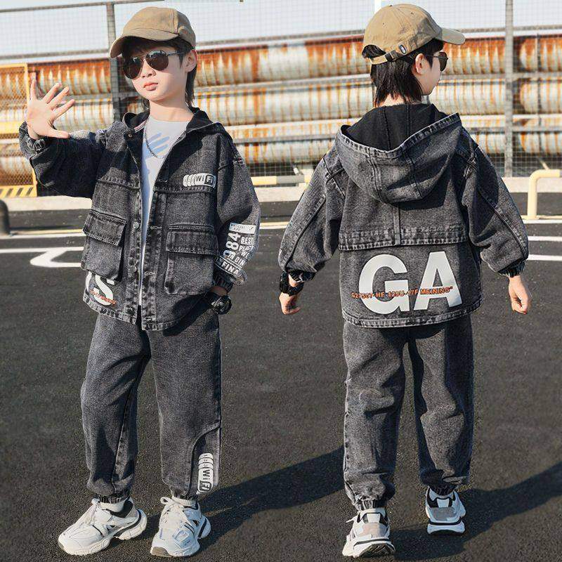 [防褪色]男童牛仔套装儿童帅气休闲装宝宝秋装时髦童装大童两件套