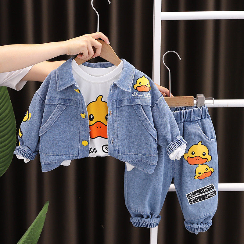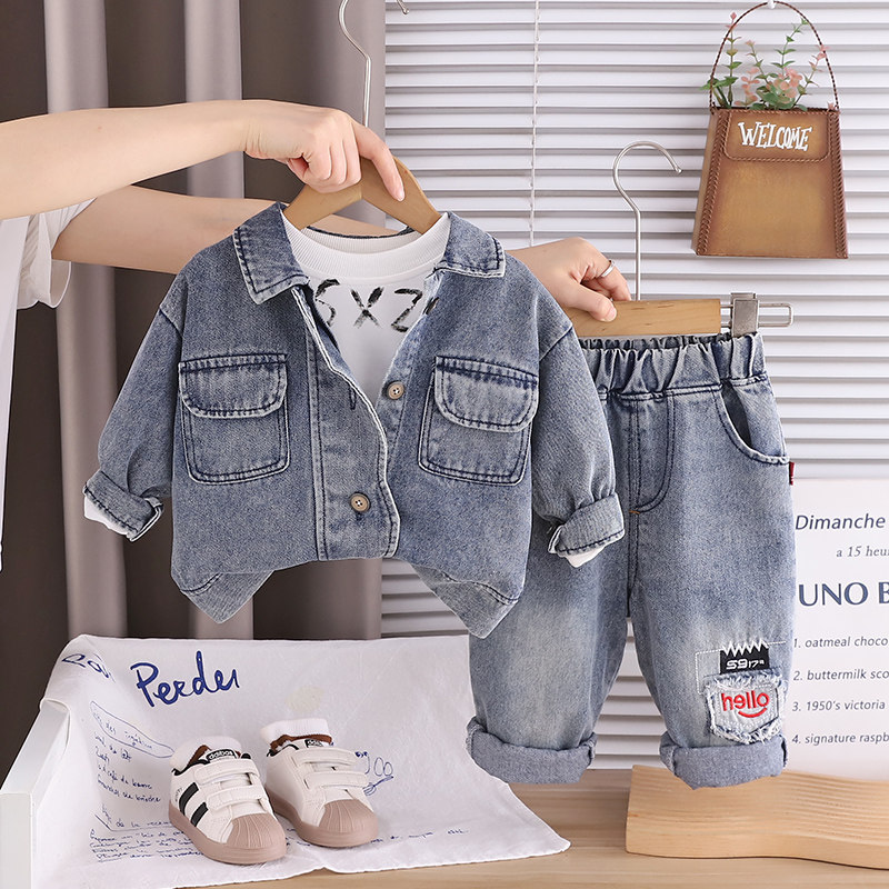 2026新款男童牛仔套装春秋休闲三件套宝宝帅气外套裤子内搭炸街潮