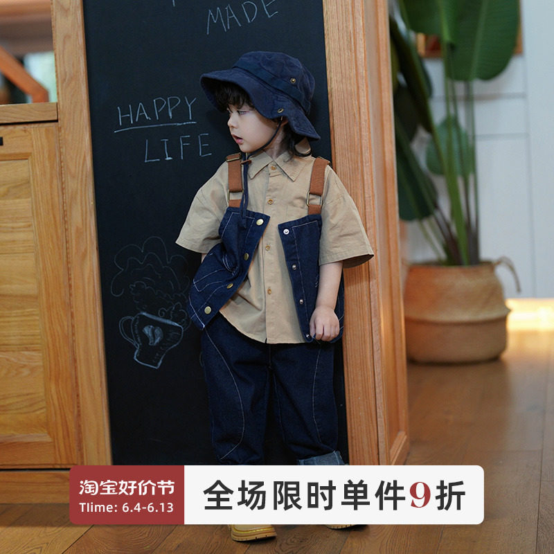 砚台家童装韩版儿童春夏男童牛仔套装女童马甲牛仔裤两件套宝宝潮