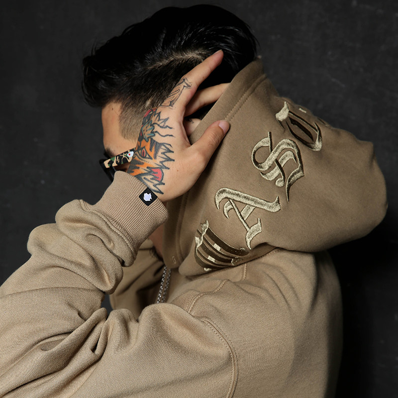 GTAL美式发泡印花卫衣春季加绒连帽重磅挺阔上衣套头长袖保暖帽衫