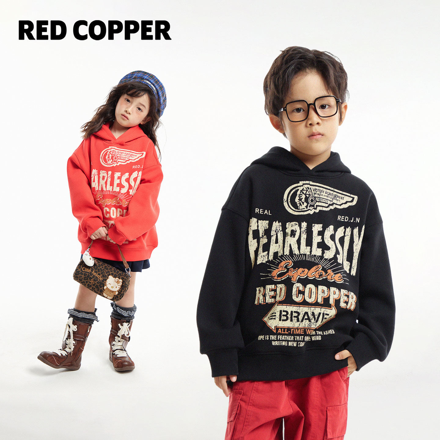 redcopper2025秋冬新款儿童美式大涂鸦时尚套头连帽加绒保暖卫衣