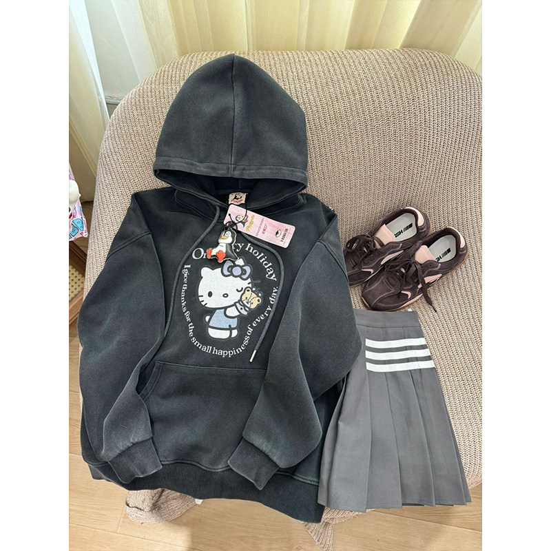 品牌外贸专柜撤回清仓捡漏~KT猫字母印花套头连帽加绒卫衣女外套