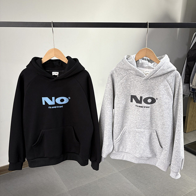 Nobodyknows 春秋日系复古立体字母印花套头连帽加绒情侣卫衣上衣