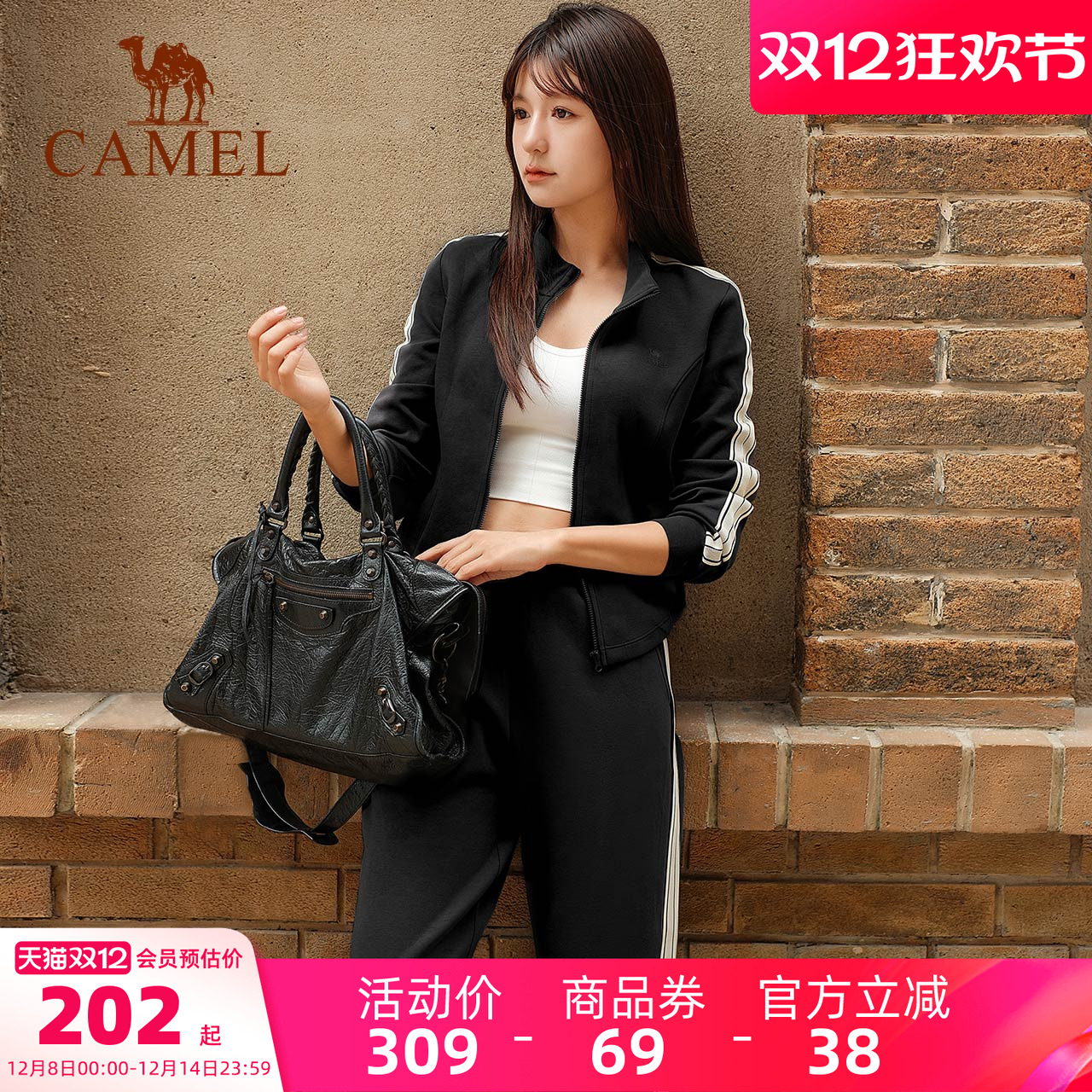 骆驼女装运动时尚休闲套装2025春夏新款长袖短款外套运动裤两件套