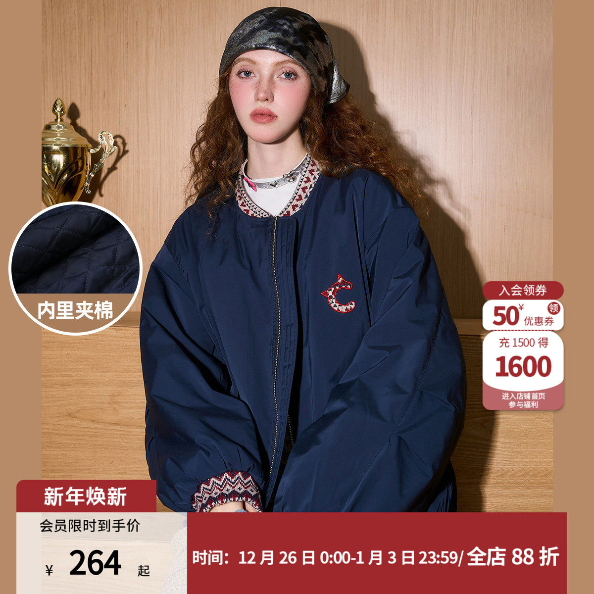 coolhut复古民族风加厚刺绣夹棉袄棒球服夹克秋冬外套棉衣棉服女