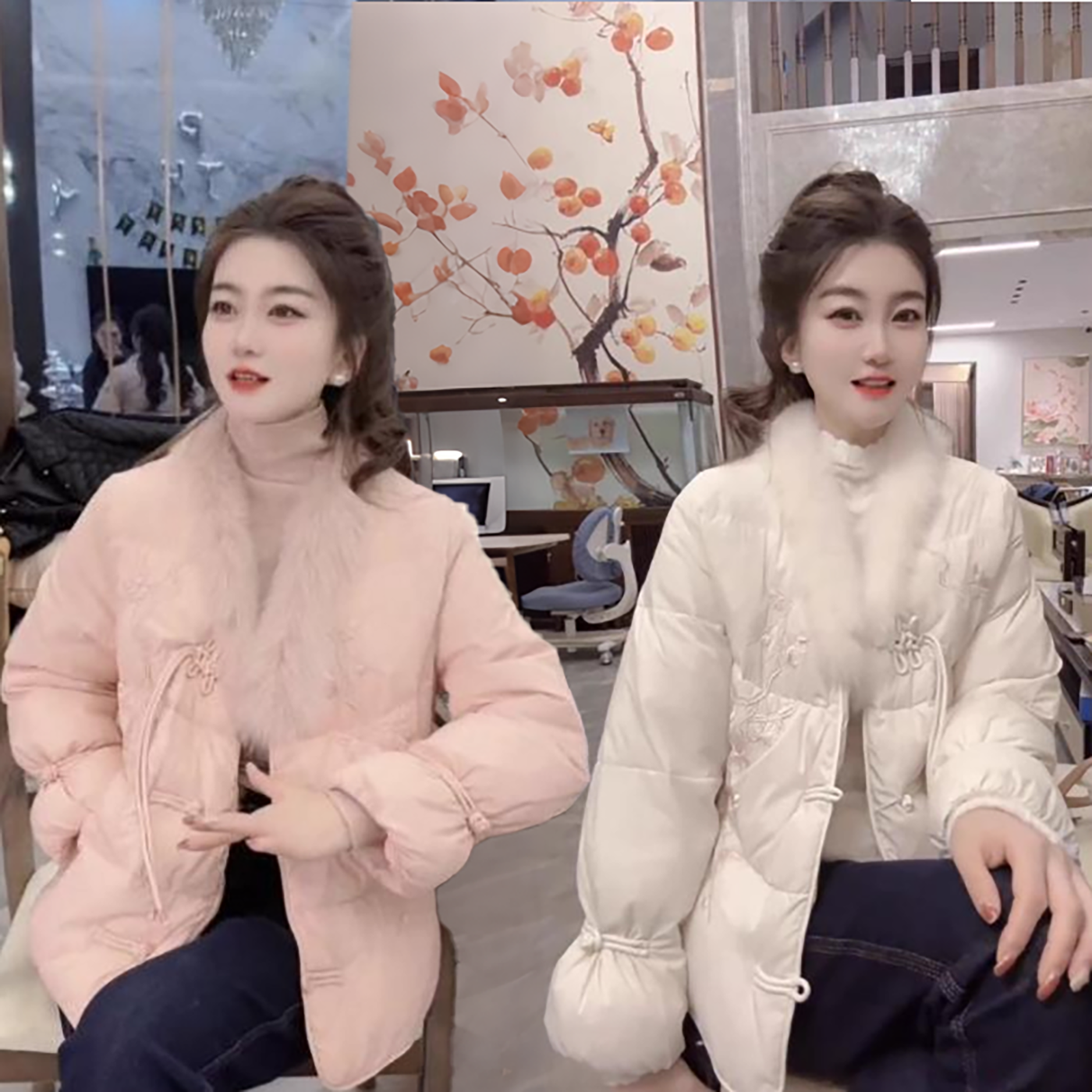 2025新款冬季复古中式国潮民族风棉服女外套V领保暖加厚刺绣棉衣