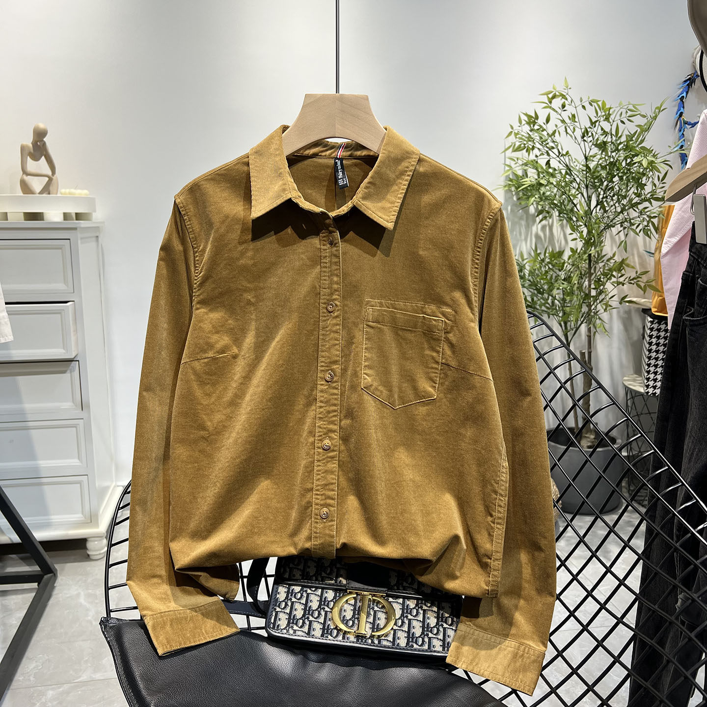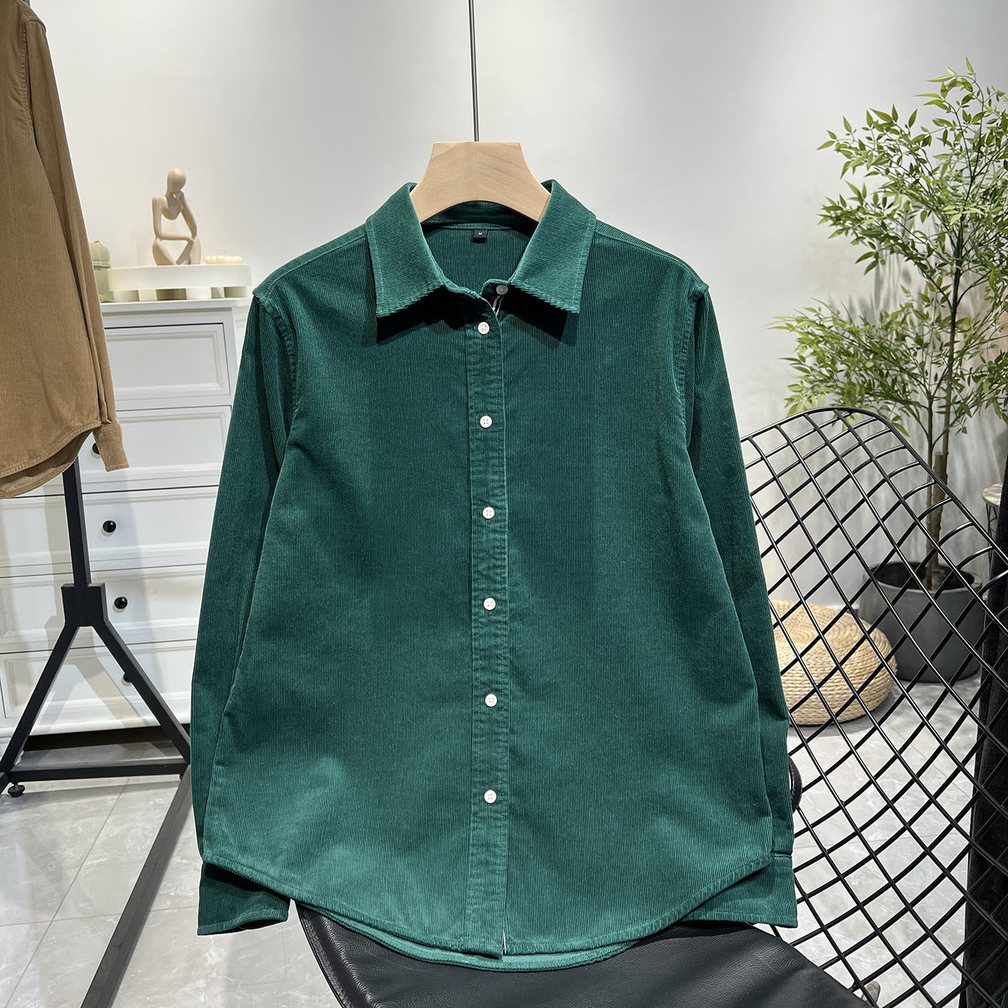 灯芯绒加厚白色衬衫女设计感小众秋冬新款学生宽松叠穿打底衬衣女
