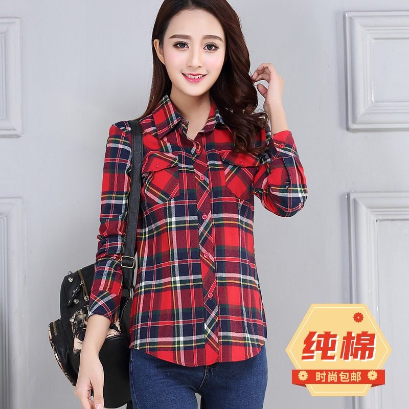 2025春秋季新款韩版休闲格子衬衫女长袖学生修身百搭打底衬衣女潮