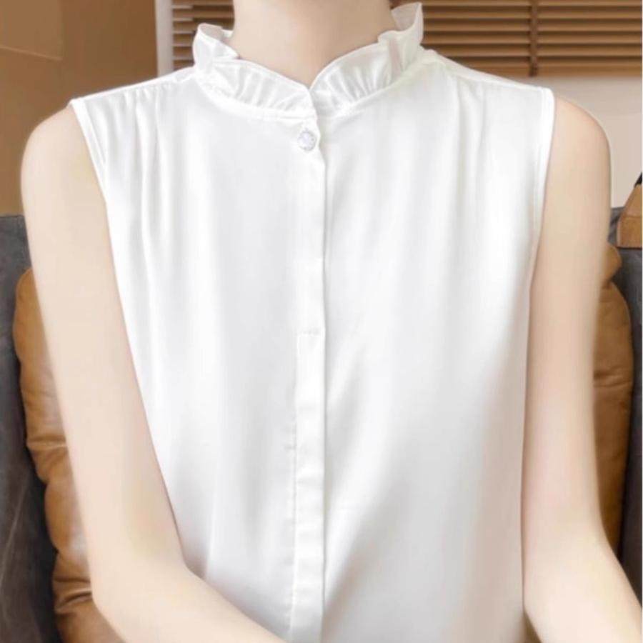 2025春季新款质感无袖木耳边打底衬衣女轻奢缎面叠穿立领百搭背心