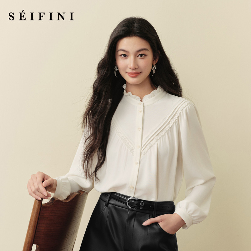 诗凡黎法式木耳领花边衬衫2025冬新款复古别致气质叠穿打底衬衣女