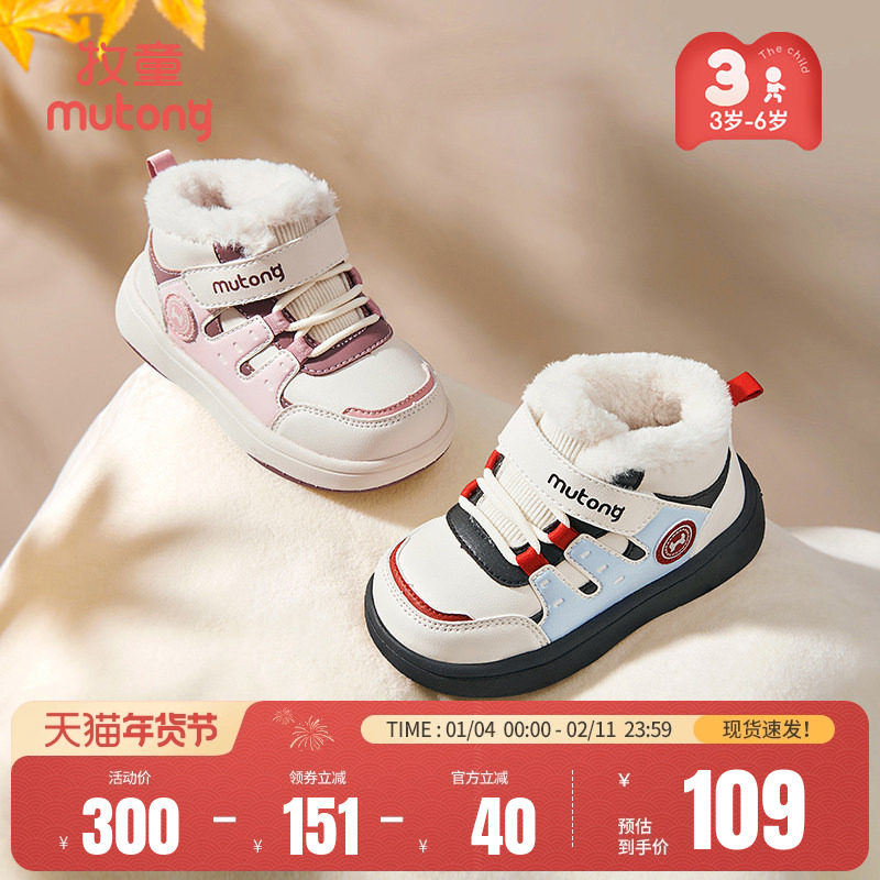 牧童儿童板鞋男童冬季轻便缓震小高帮童鞋加绒保暖女童鞋休闲棉鞋