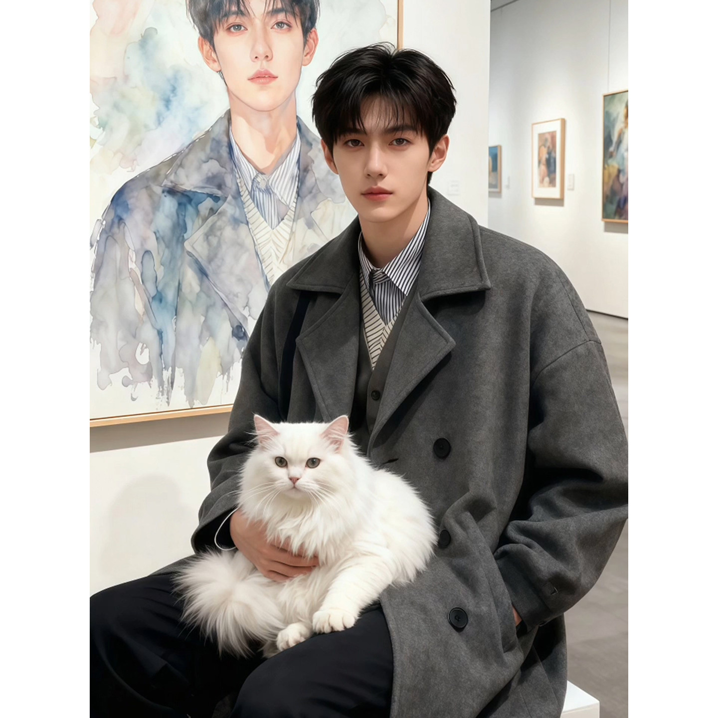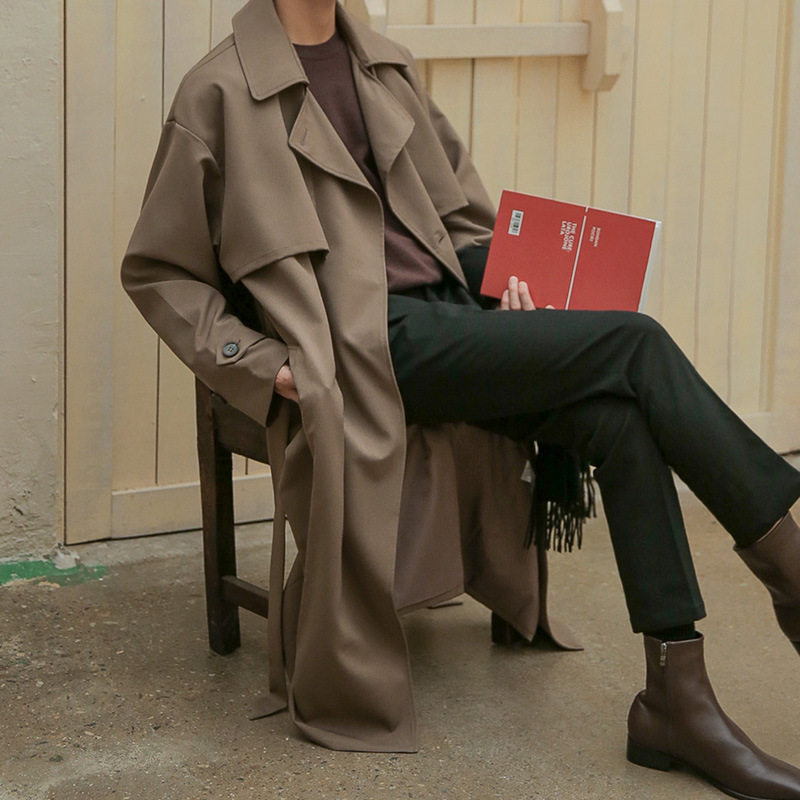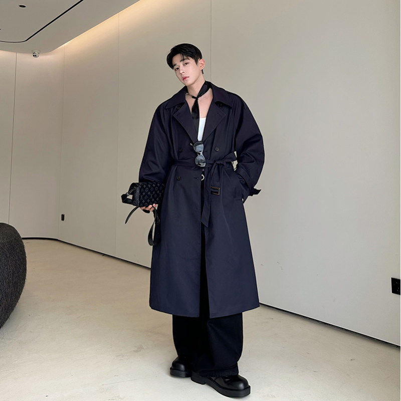 2025秋冬老钱风韩版双排扣风衣男中长款廓形气质痞帅高级感腰带款