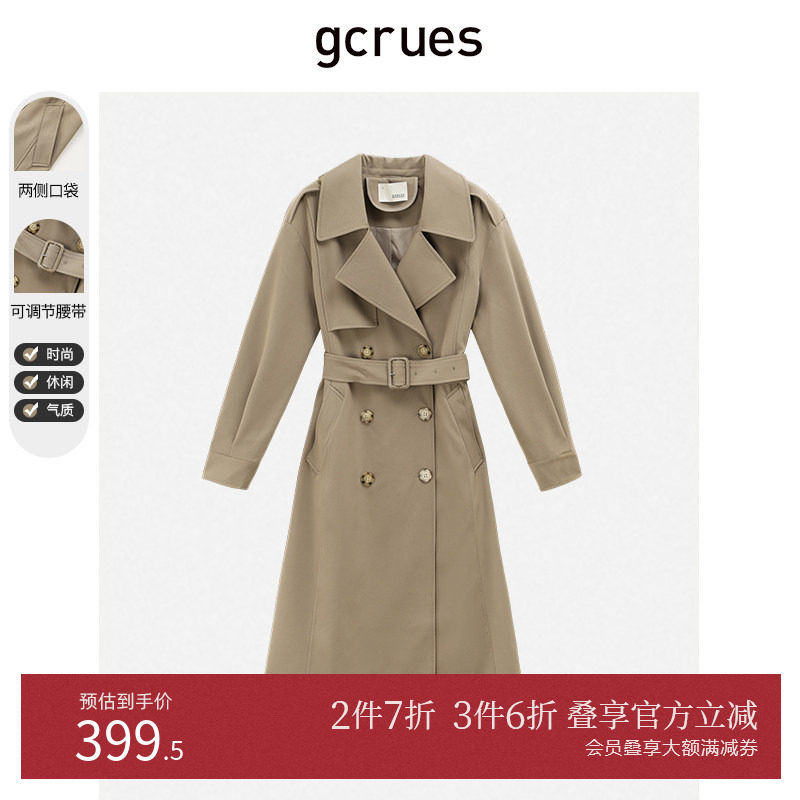 gcrues韩版气质风衣中长款春秋女2025年新款英伦风双排扣春秋外套