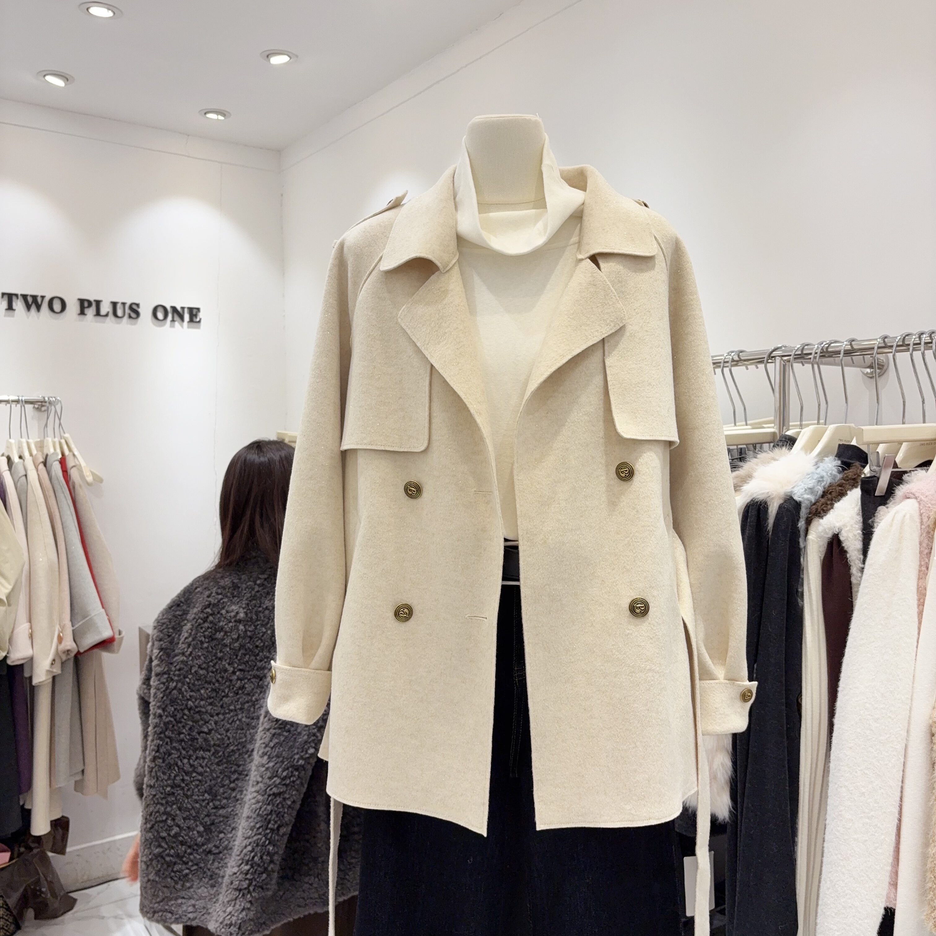 卡其色双排扣短款风衣外套女2026春秋新款韩版宽松高级质感休闲女