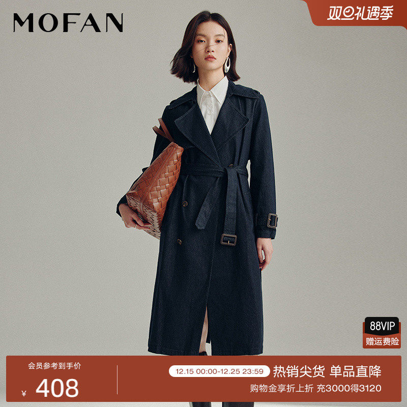 原色牛仔大翻领风衣外套女MOFAN摩凡2025秋款韩版双排扣休闲风衣
