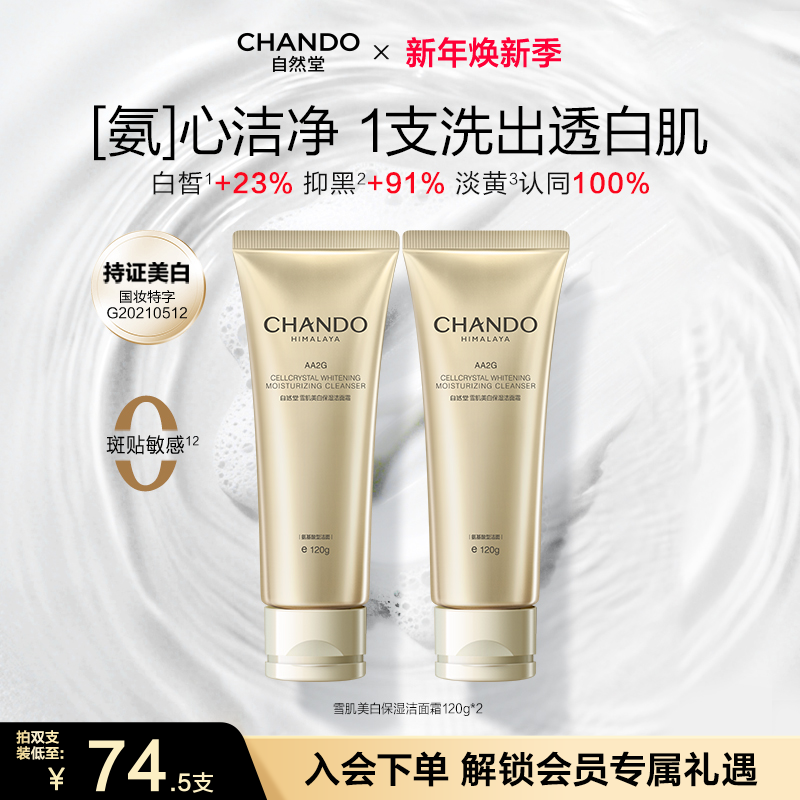 自然堂雪肌美白洁面霜清洁氨基酸洗面奶净澈提亮白嫩AA2G持证美白