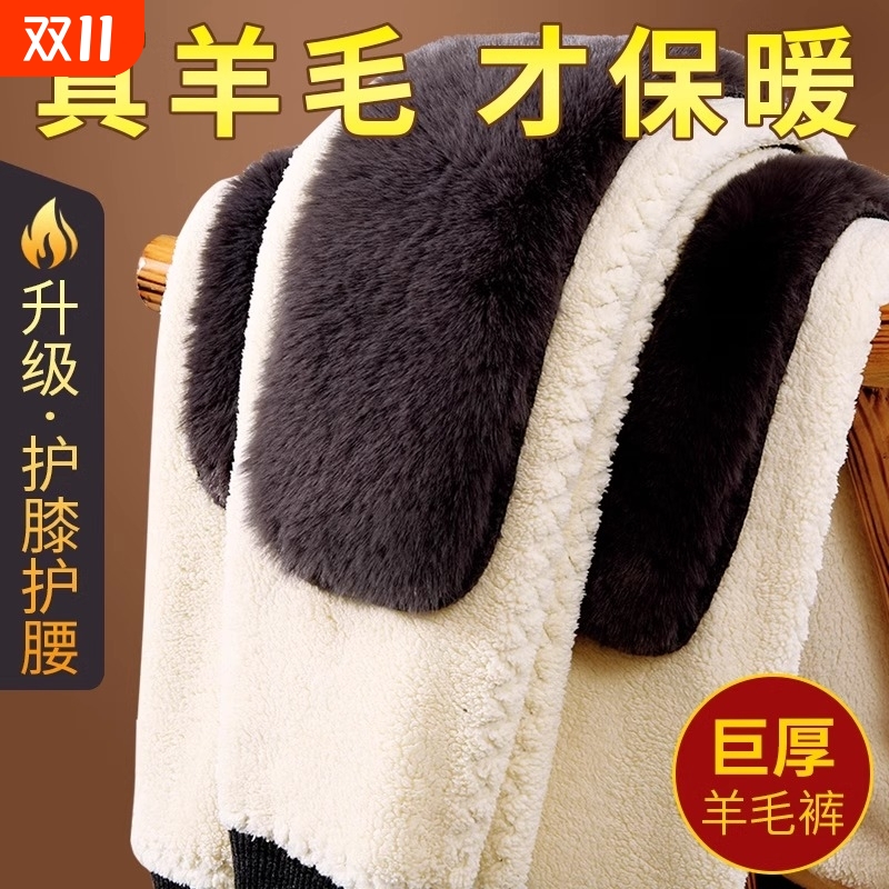 羊绒裤男加绒加厚保暖裤中老年羊毛裤羊羔绒棉裤女冬季打底裤德绒