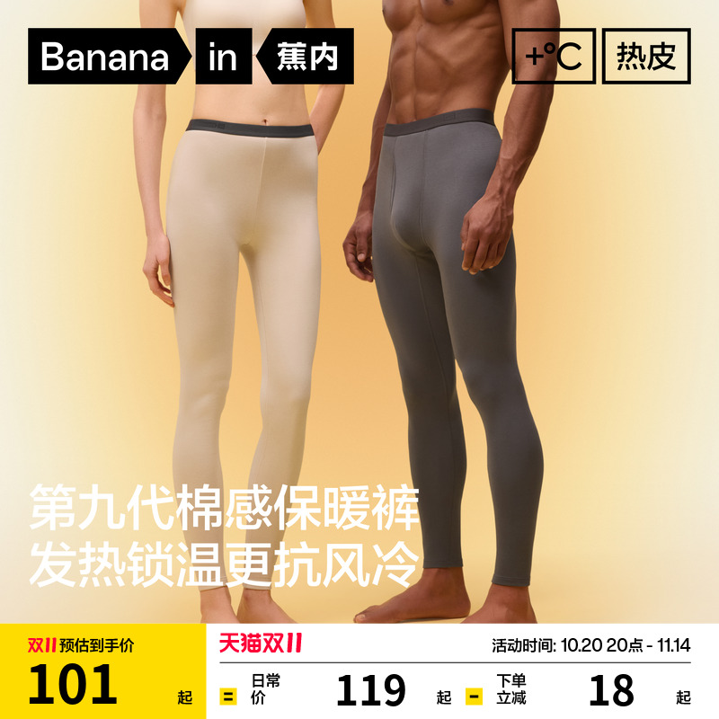 蕉内热皮3系男女士保暖裤冬季吸湿发热抗静电情侣同款打底裤秋裤