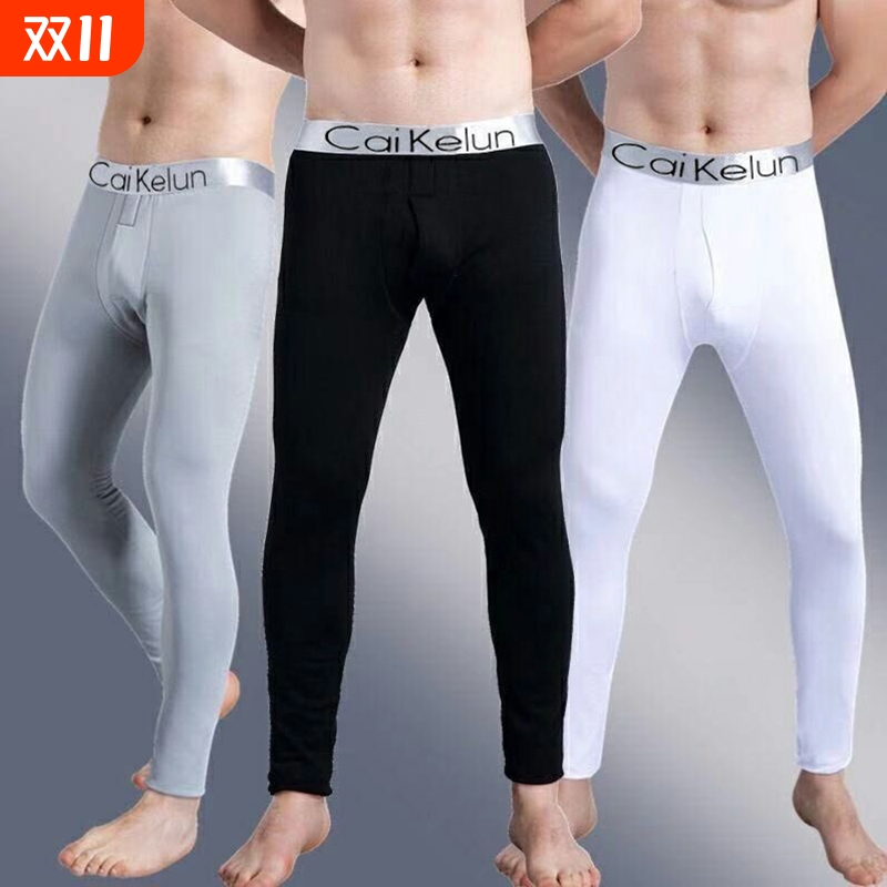 男士秋裤单件加绒薄款衬裤紧身青年线裤保暖裤秋冬季打底裤棉毛裤