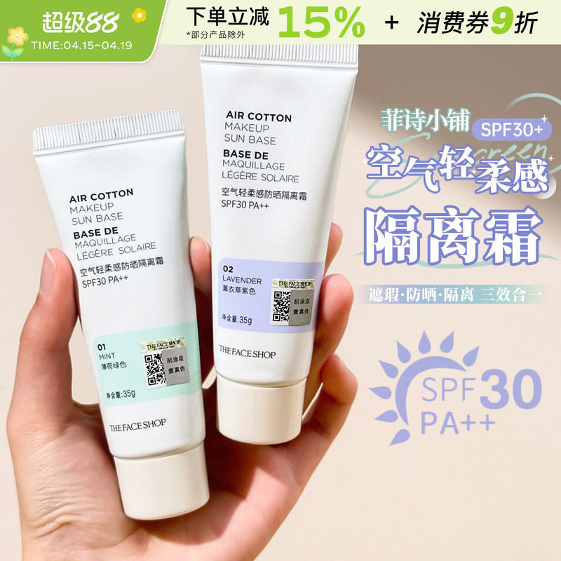 The Face Shop/菲诗小铺隔离霜防晒遮瑕三合一绿色效期至27年1月