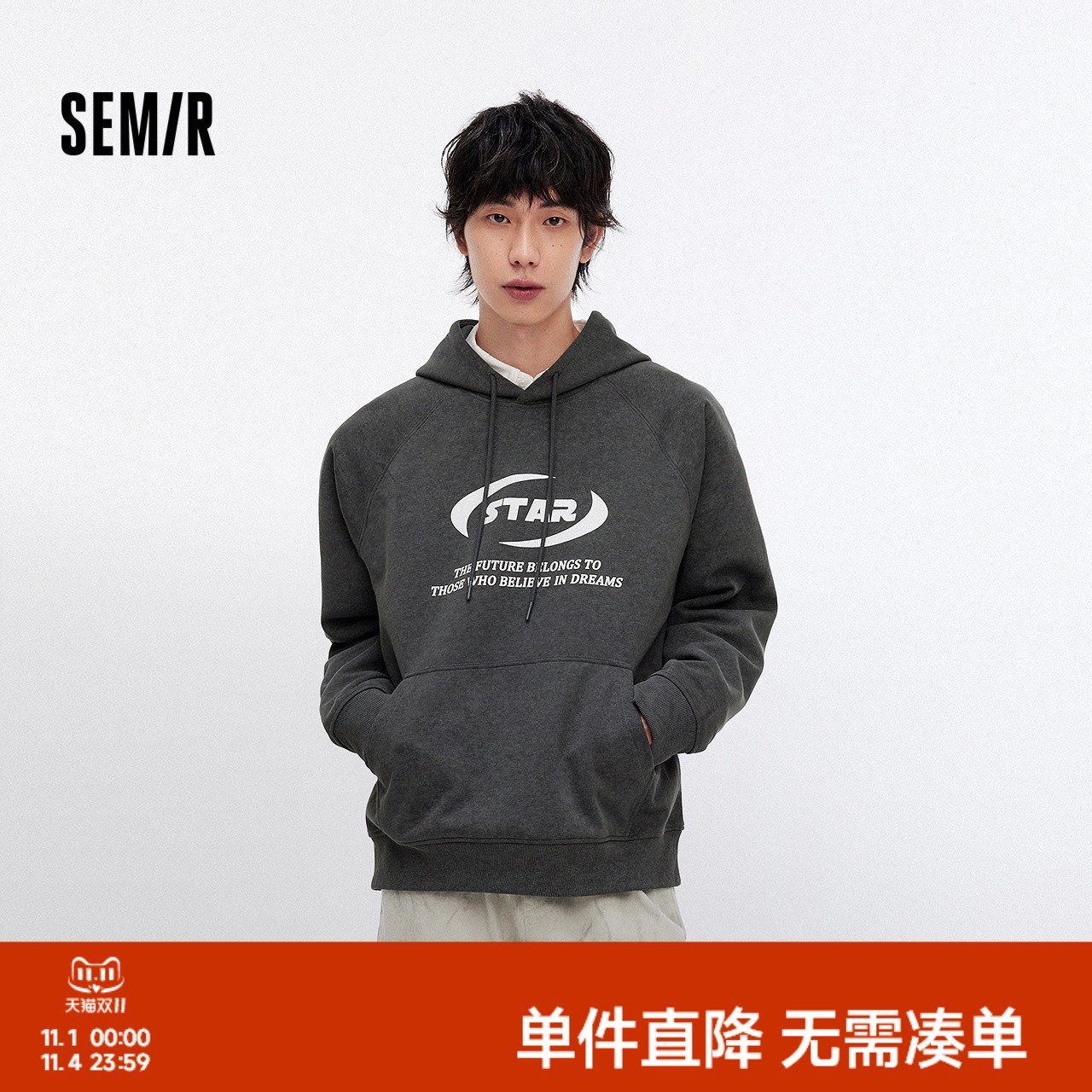 - 以纯 连帽T恤男