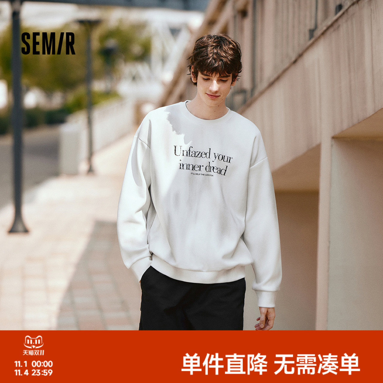 森马卫衣男冬季复古街头潮流涂鸦印花长袖上衣白色宽松圆领休闲装