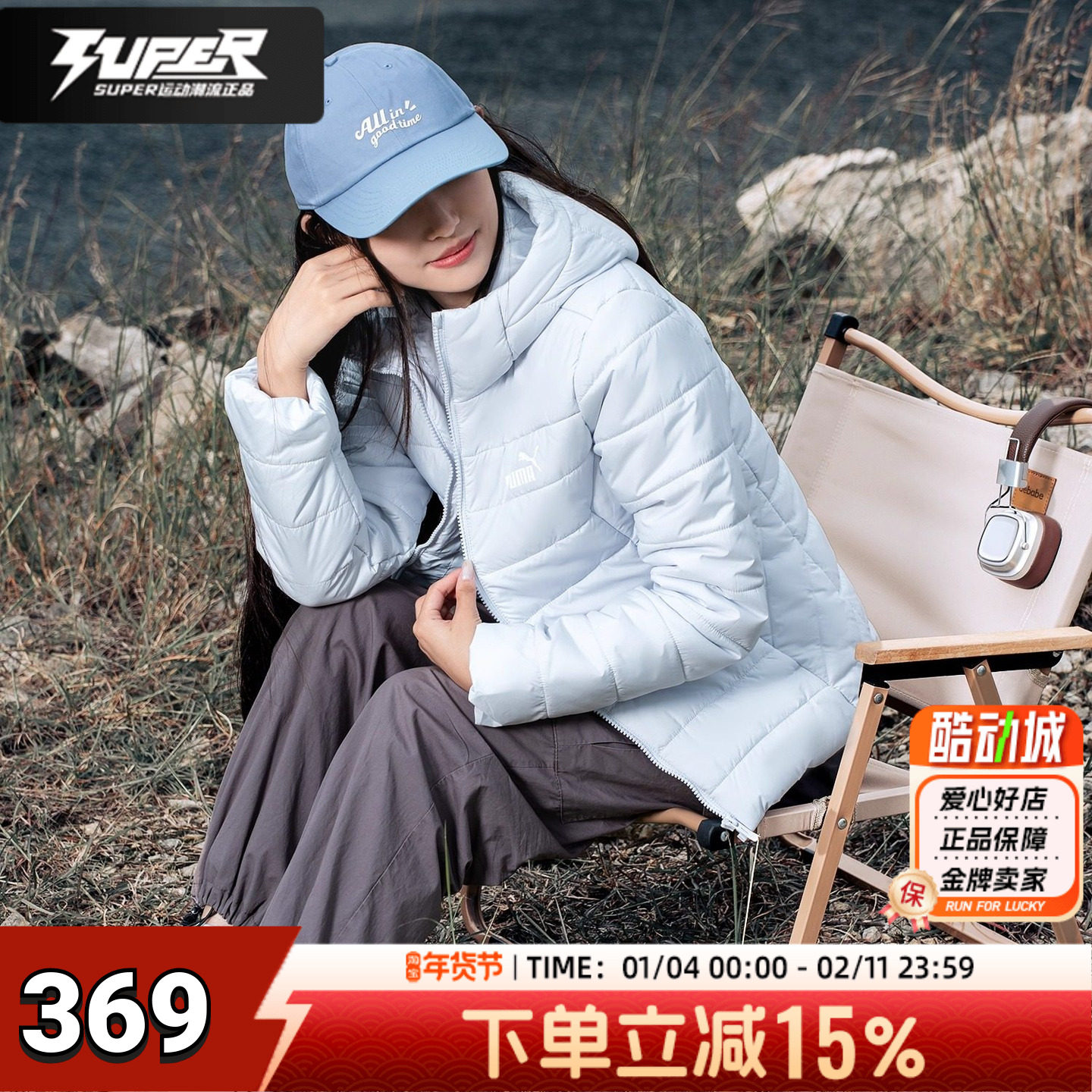 PUMA彪马女装官方正品银色棉服冬季新款连帽保暖外套夹克女运动服