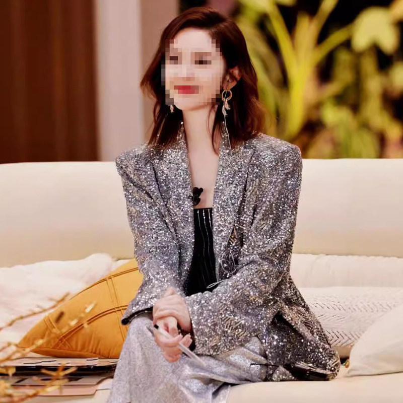 韩版时尚银色亮片西装外套女宽松男友风小香风复古通勤西服外衣潮