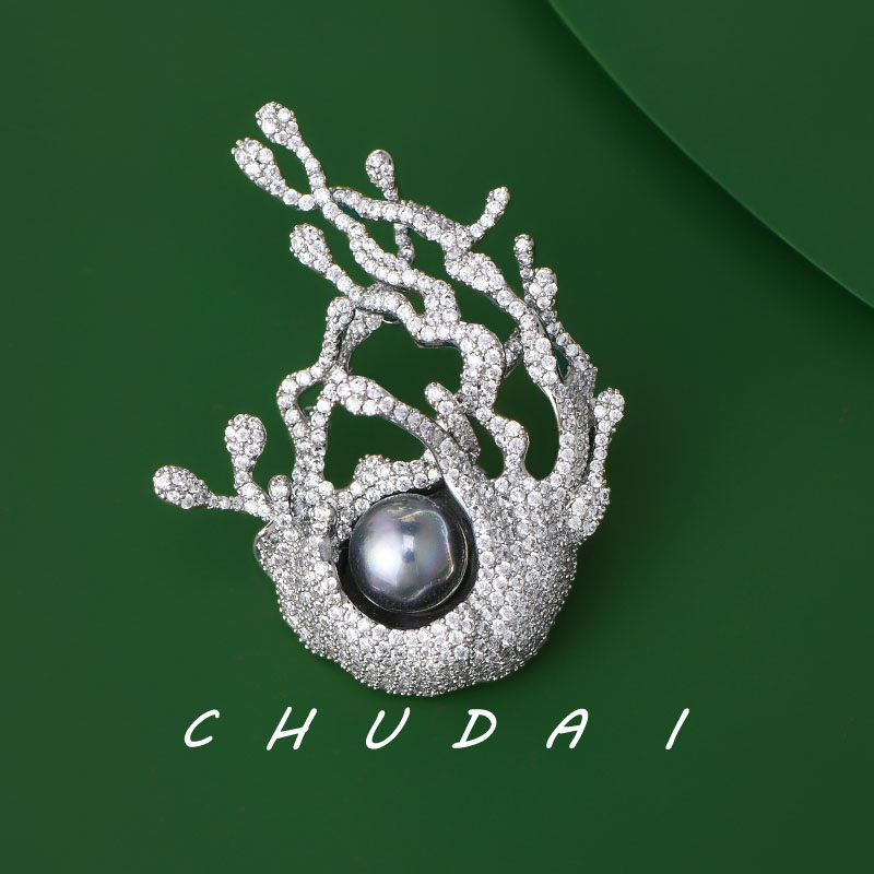 珊瑚海胸针高档女气质银色高级感时尚精致胸花西装外套唯美配饰潮