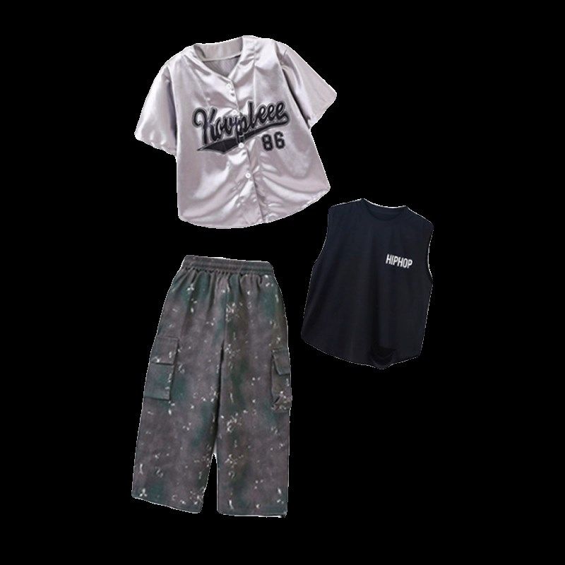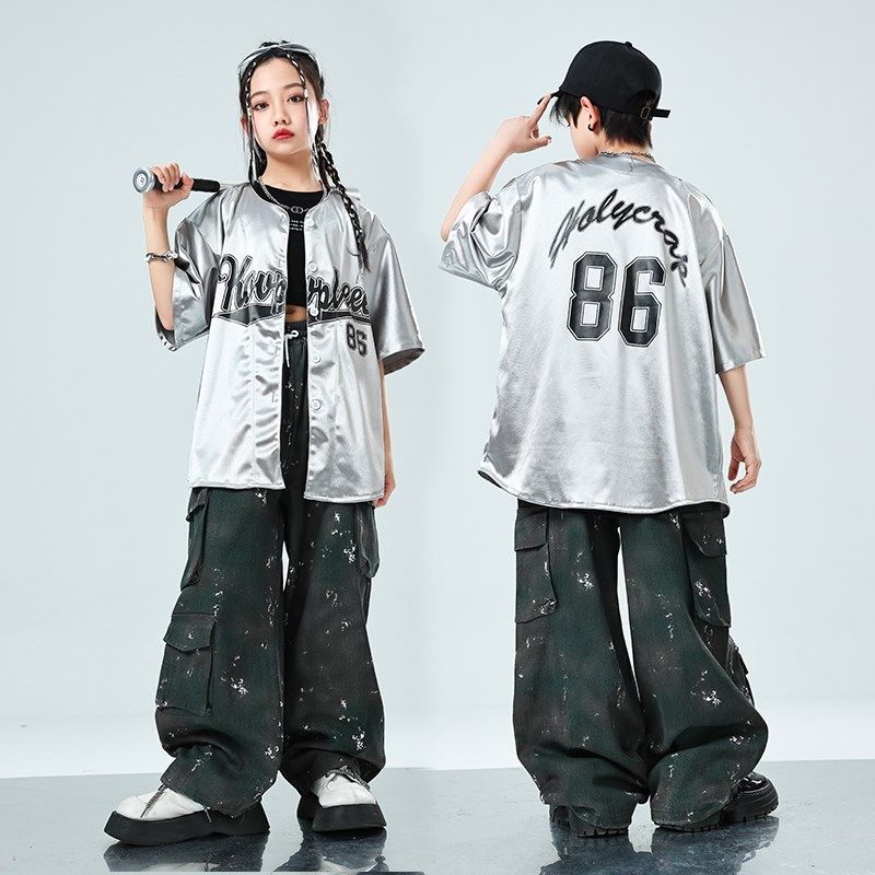 街舞儿童潮服银色棒球服外套男童嘻哈爵士舞女孩表演服走秀摄影夏