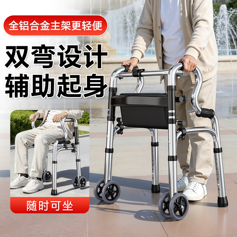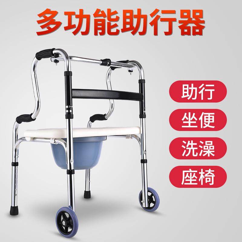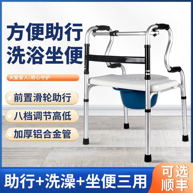 助行器带坐便养老院适老折叠助步器铝合金洗澡椅康复行走支架带轮