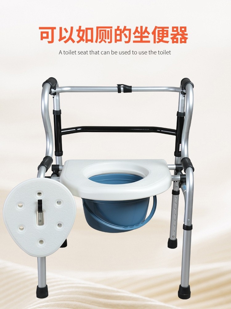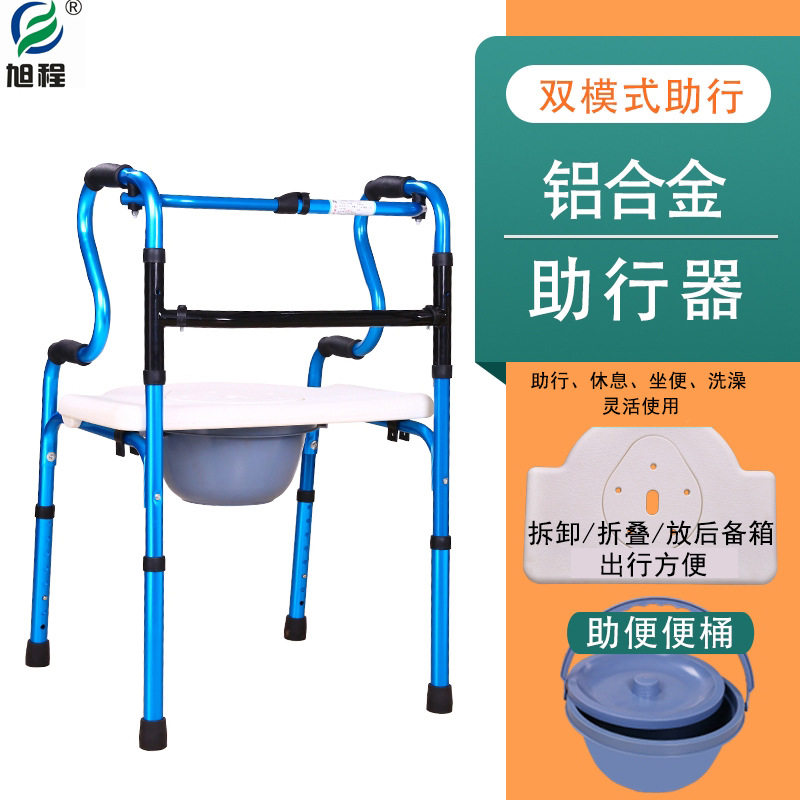 铝合金坐便椅老人助走器带便孔折叠残疾人助行坐便椅助步器带便桶