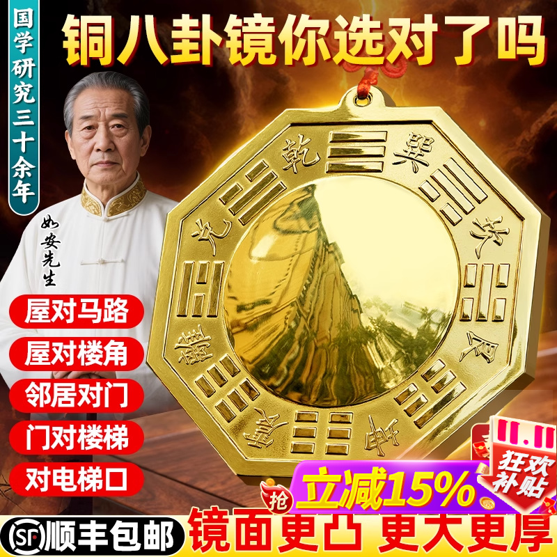 山海镇挂件纯铜凸面镜家用门口九宫八卦镜室内外入户门摆件旗舰店