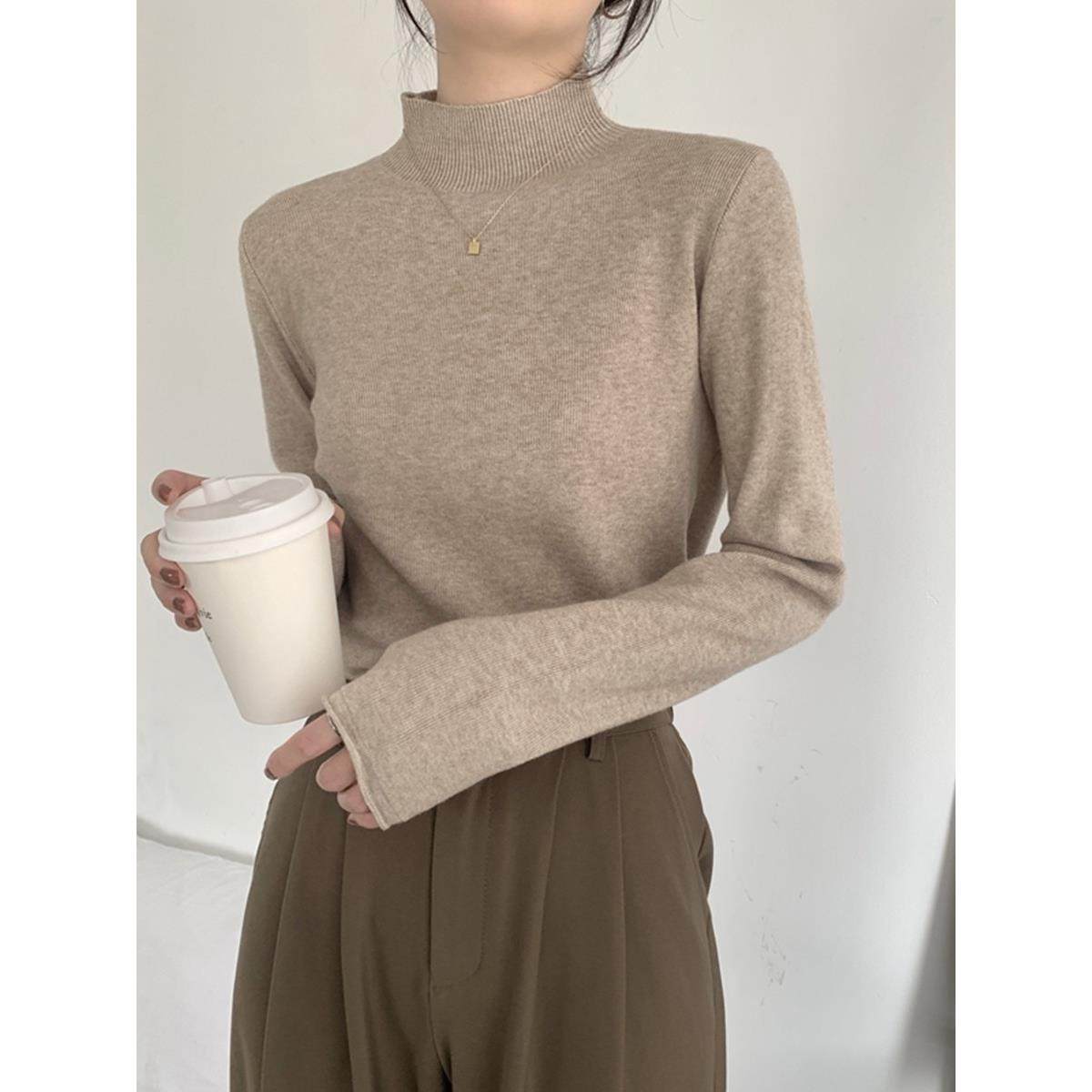 气质半高领内搭早春秋冬季2025宽松软糯针织毛衣女韩版打底衫上衣