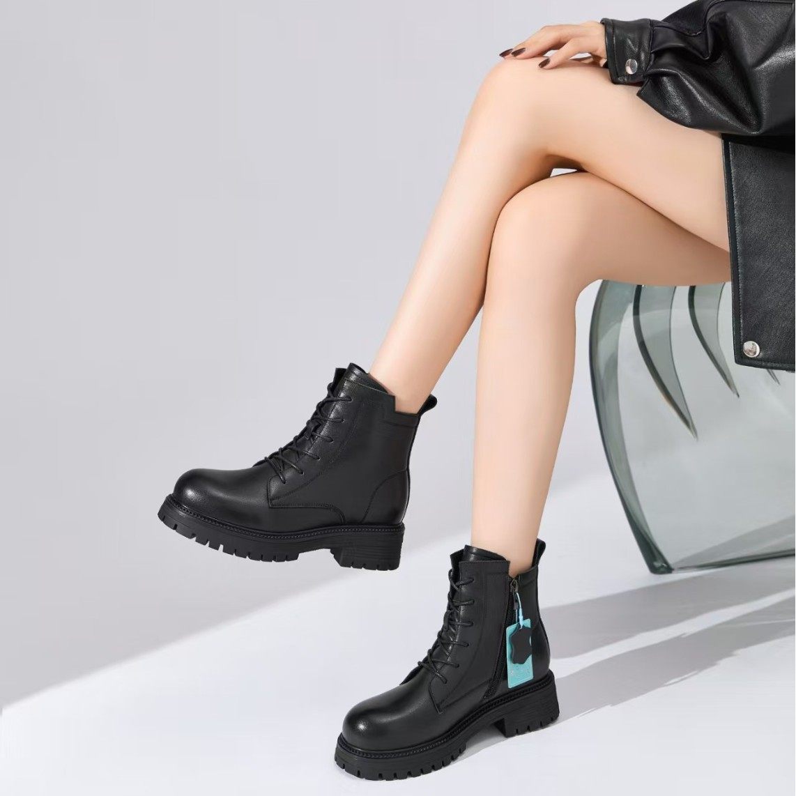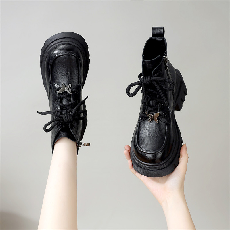 - 马丁靴系带女 粗跟