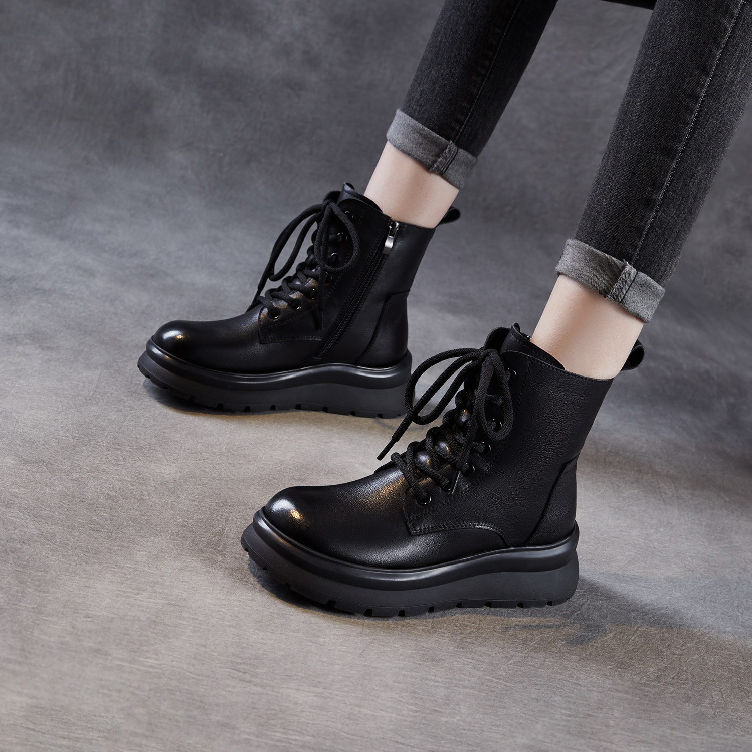 - 马丁靴系带女