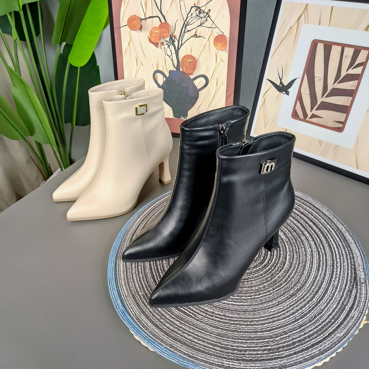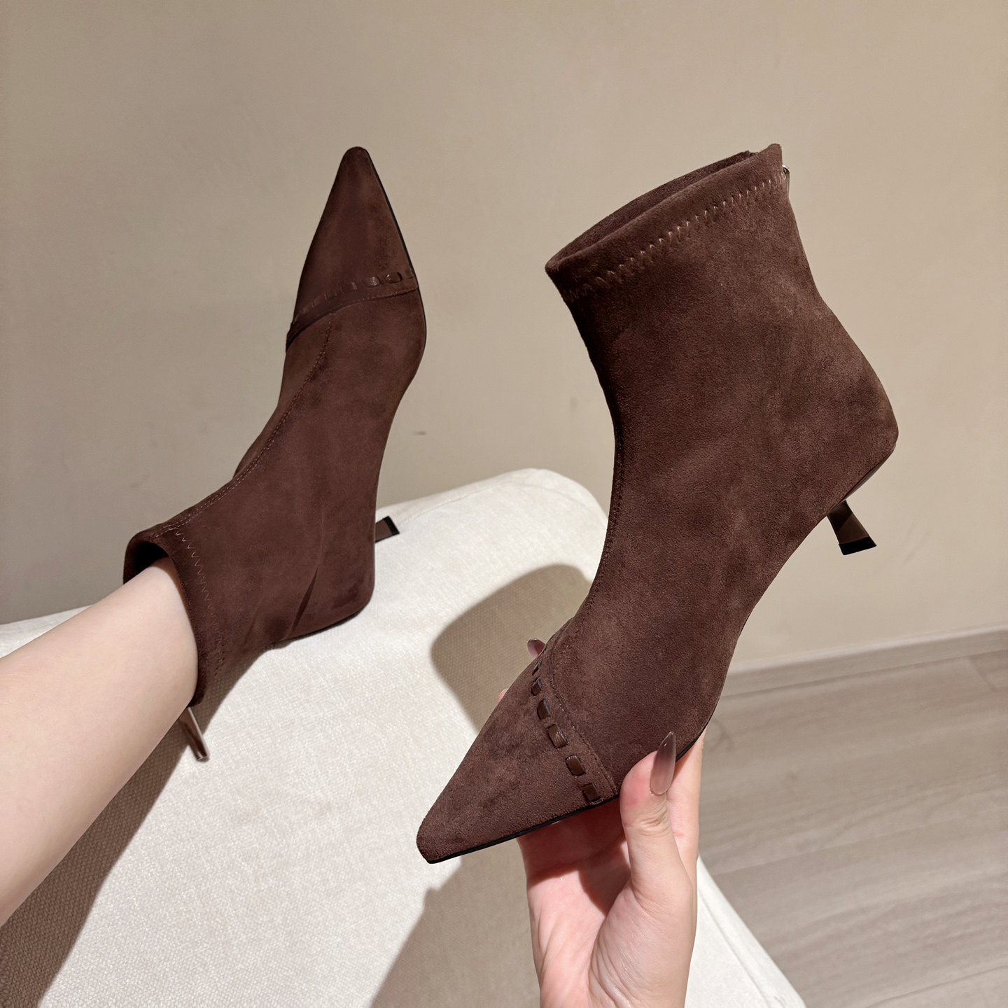 - 真皮尖头短靴女鞋