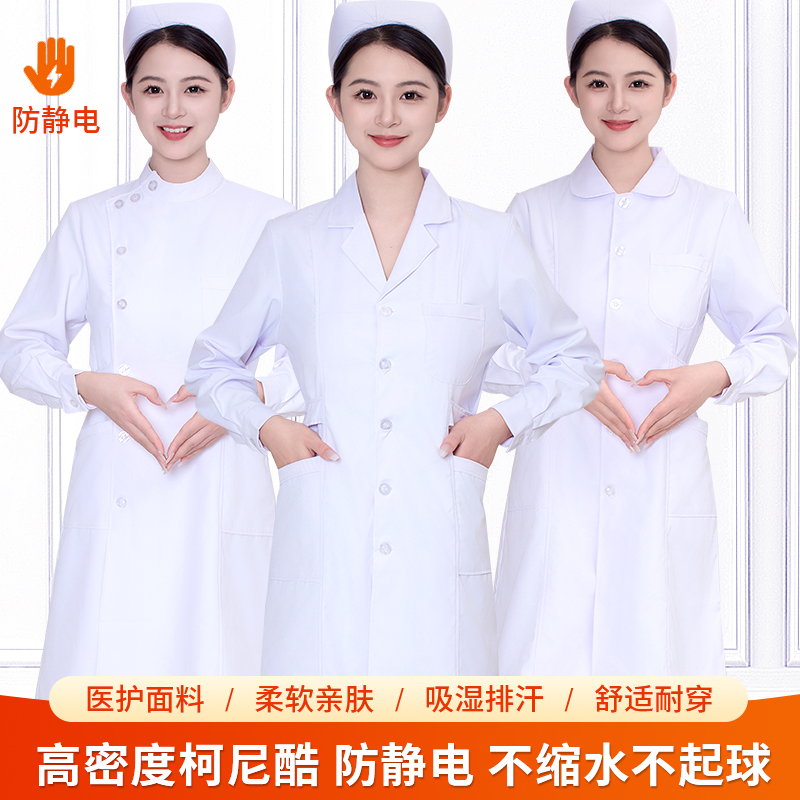 高端护士服长袖女工作服套装冬装医院白色美容服药店工作服白大褂