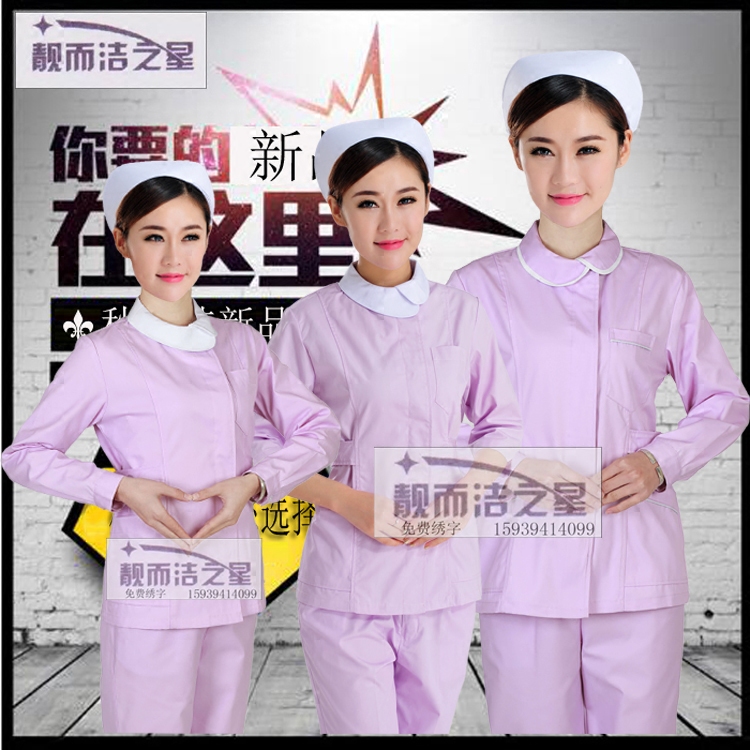 新款南丁格尔护士服分体套装紫色冬装长袖护士服美容服母婴护理服