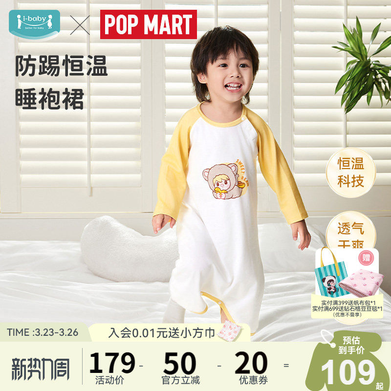 ibaby儿童睡衣防踢睡袋家居服男女春夏秋季长袖睡袍宝宝连体睡裙