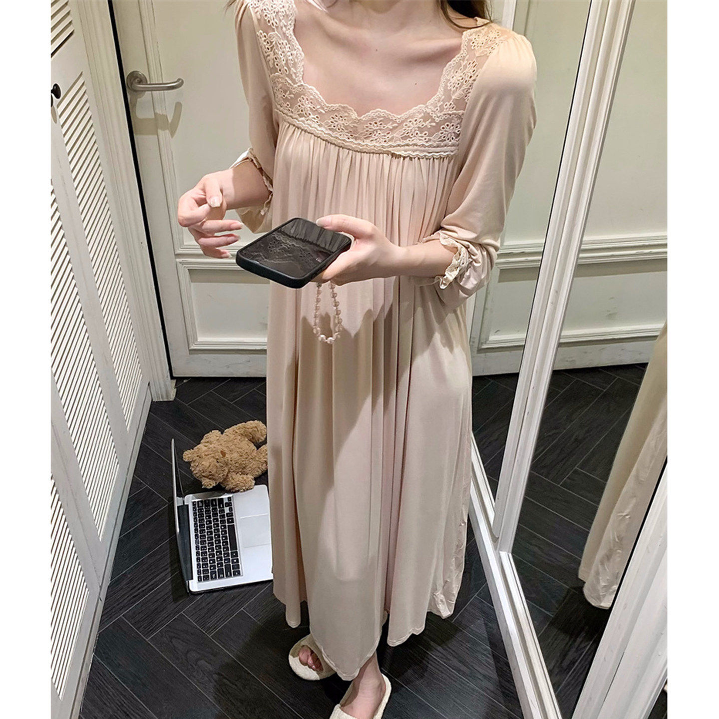 2026新款法式宫廷蕾丝莫代尔棉睡衣女春秋季高级感长款睡裙家居服