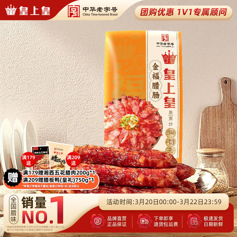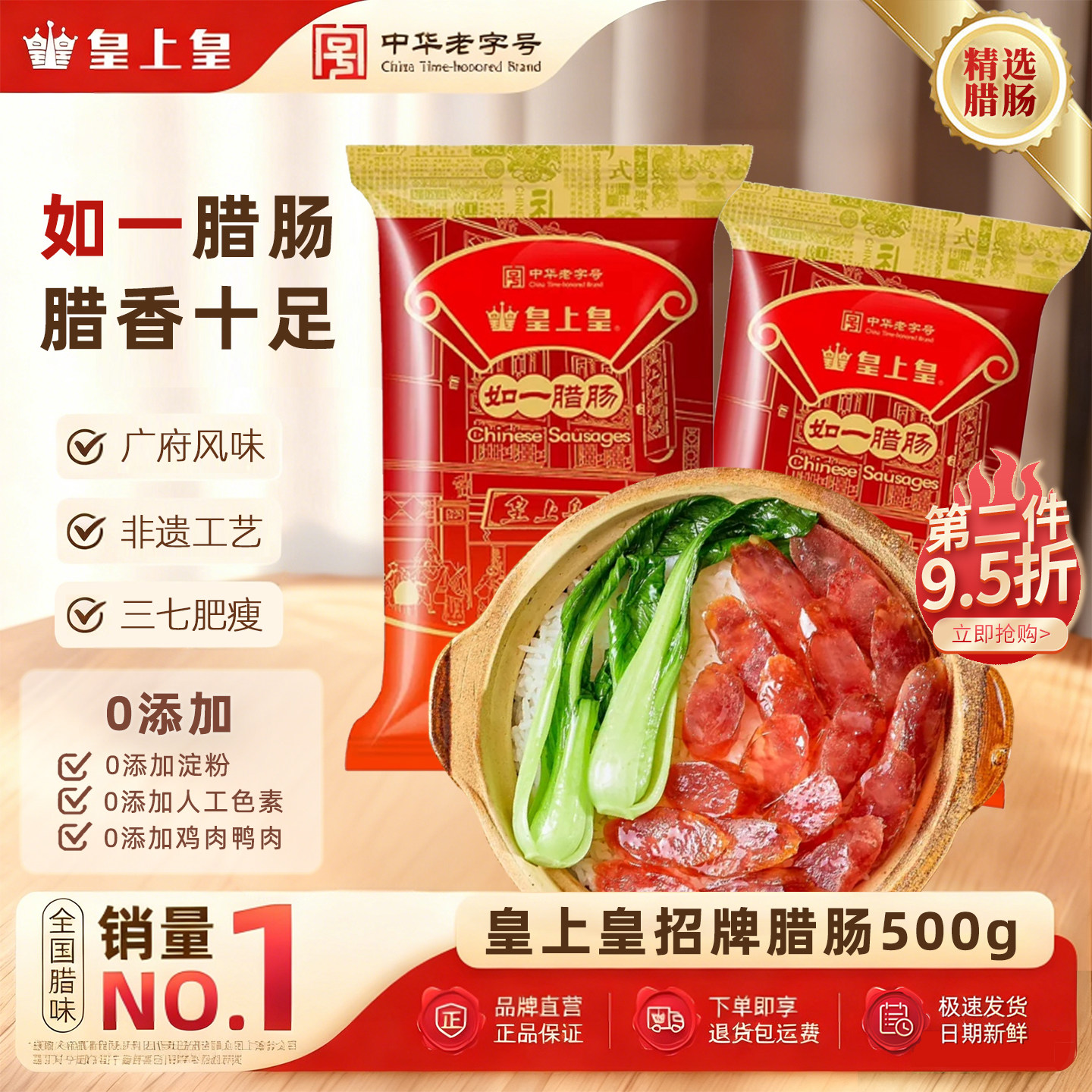 皇上皇如一腊肠500g七分瘦纯猪肉广式腊味煲仔饭腊肠广东特产糖酒