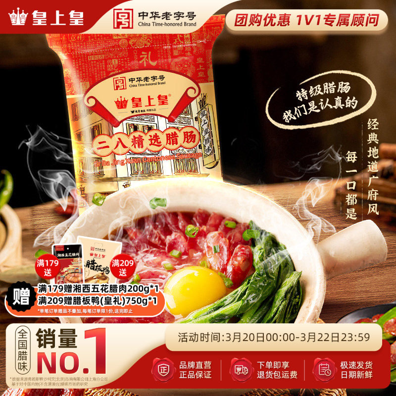 皇上皇广味腊肠广式香肠正宗甜味腊味特产煲仔饭广东广州年货特产