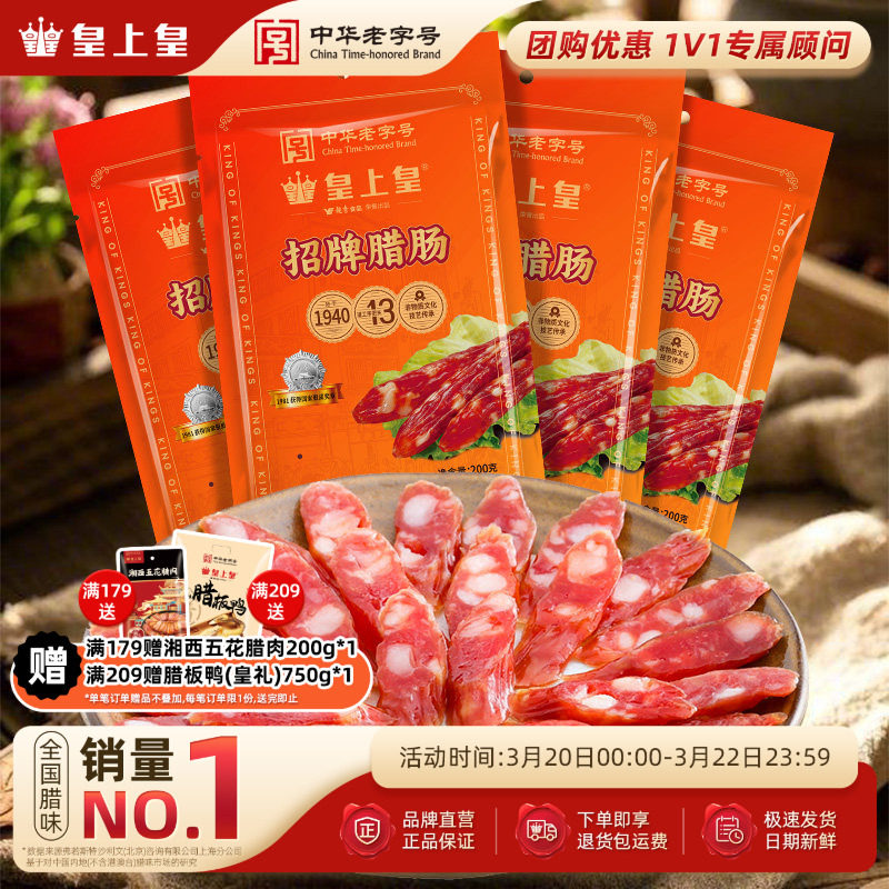 皇上皇招牌腊肠200g*4包广式腊肠正宗广州特产年货送礼团购