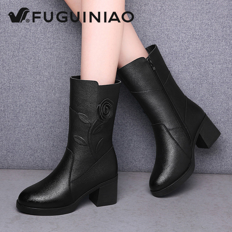 - 短靴真皮高跟冬