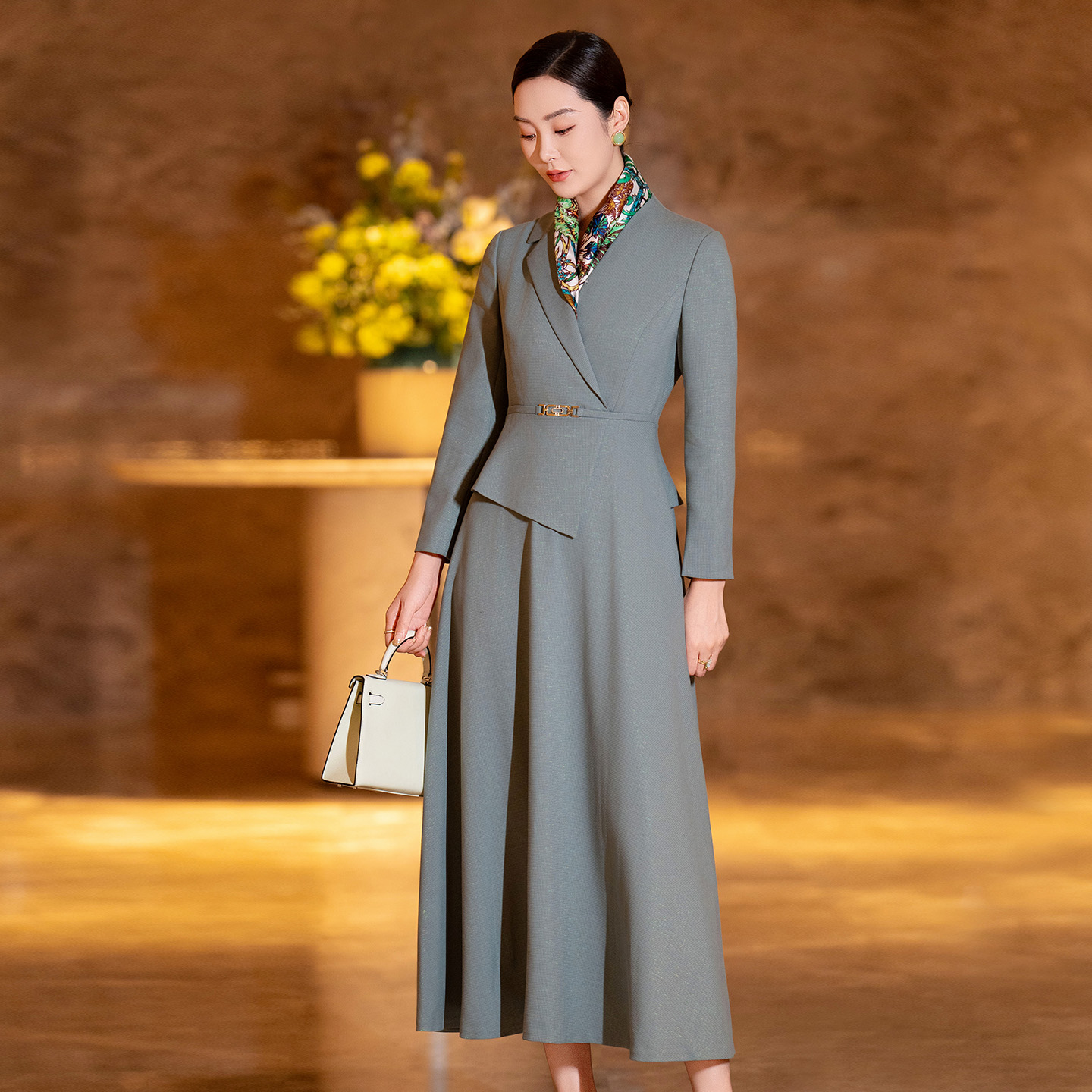 首尚格释2025年秋季新款时尚气质端庄大气浅蓝色直筒修身连衣裙女