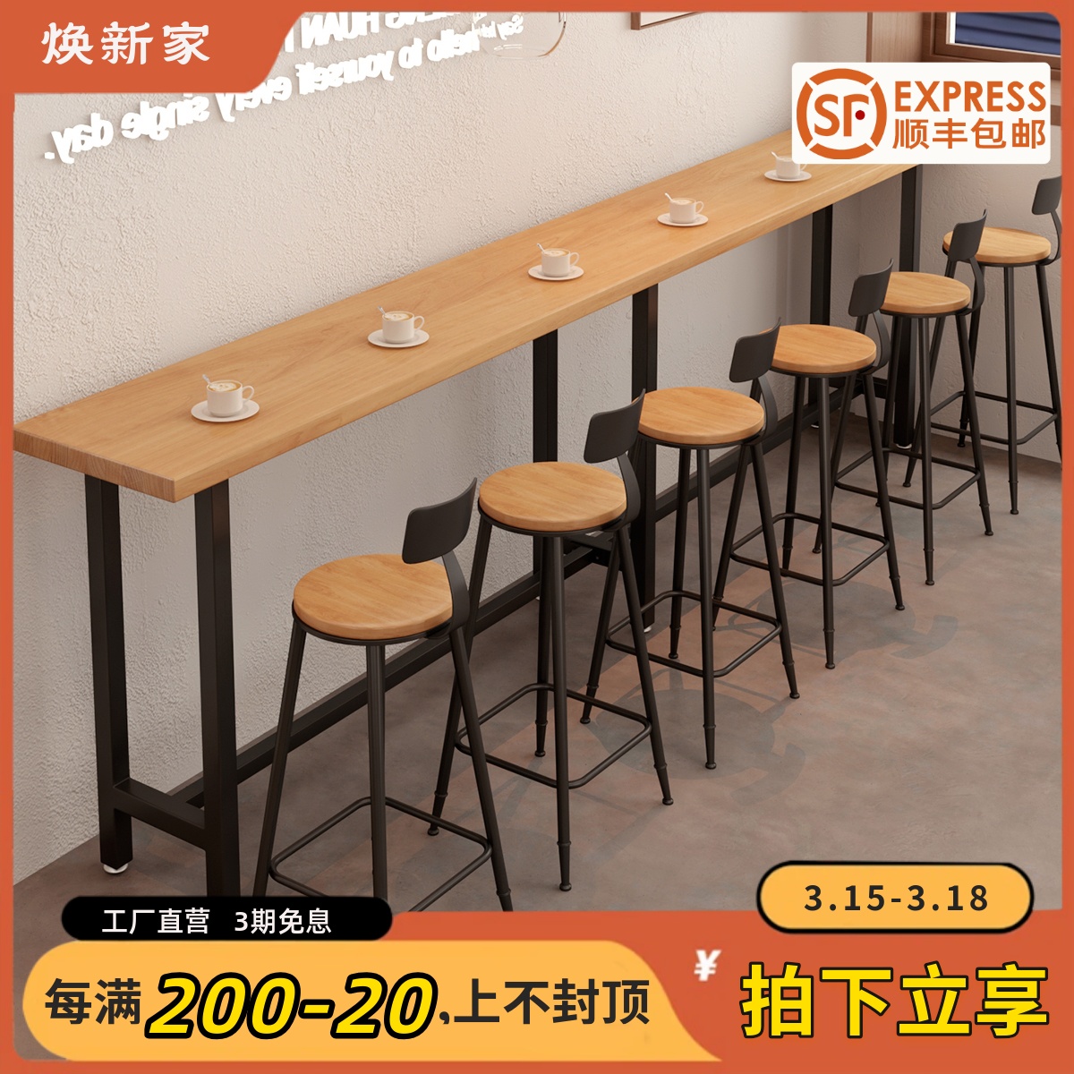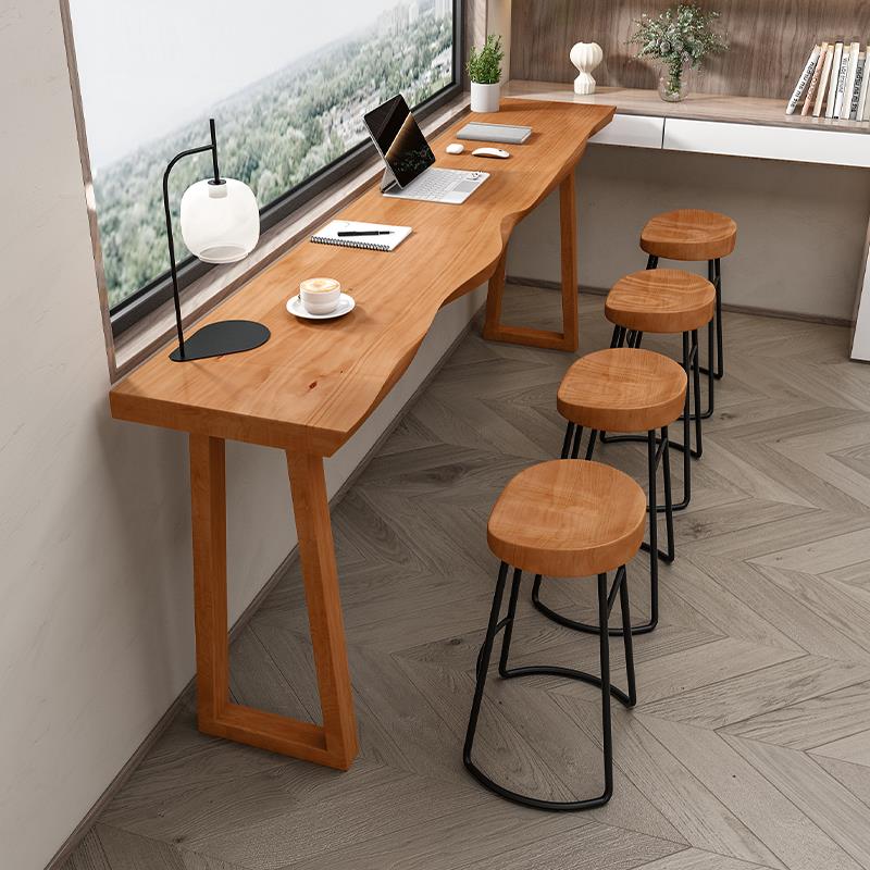 吧台桌椅组合商用实木酒吧奶茶店长条高脚家用阳台窗边靠墙窄桌子