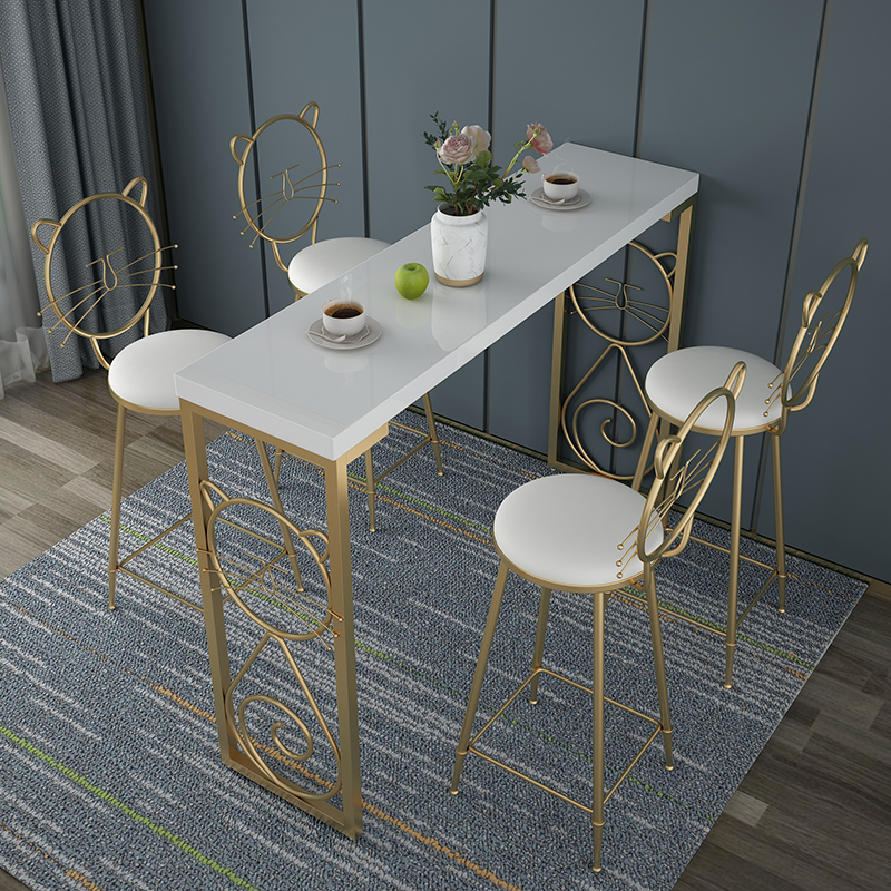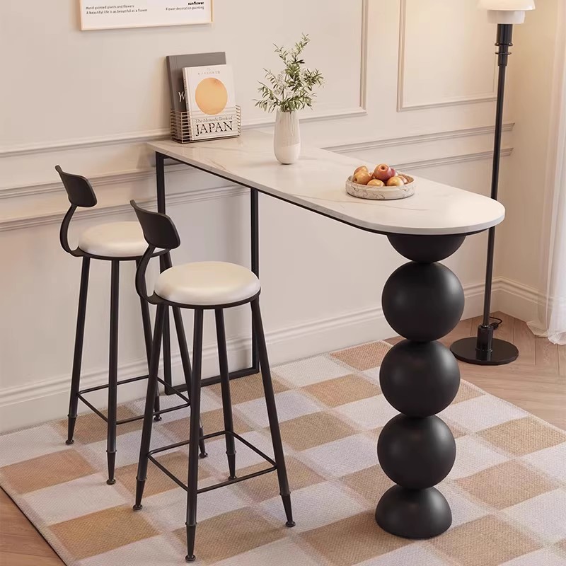 北欧简约高脚桌大理石吧台桌椅组合奶茶店靠墙小吧台酒吧长条桌子
